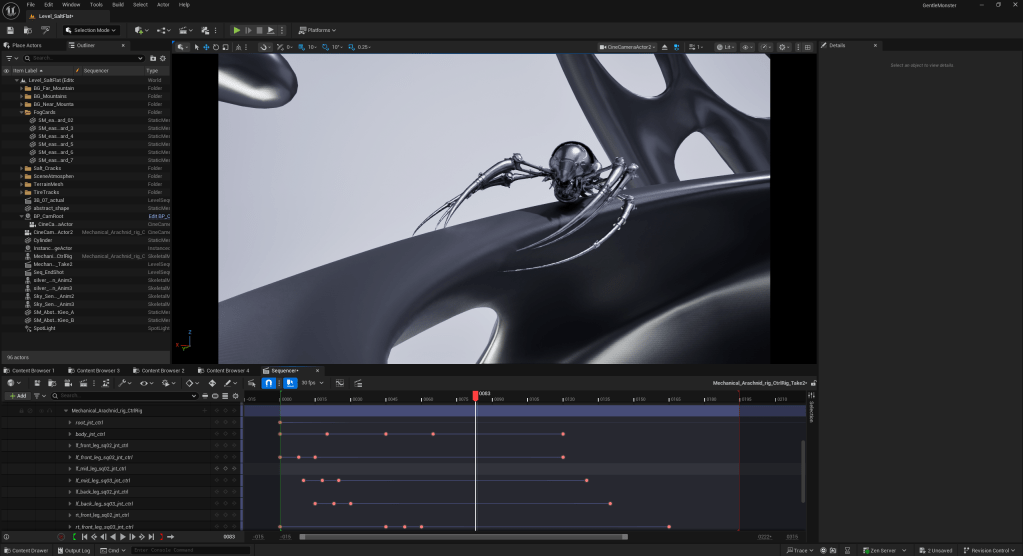 After meeting up with the team, we settled on the first two ideas and decided not to go with the glasses-on-the-spider idea. Now that I have the direction on the new animation, I fire up Unreal and get started with the rigging and animation process.